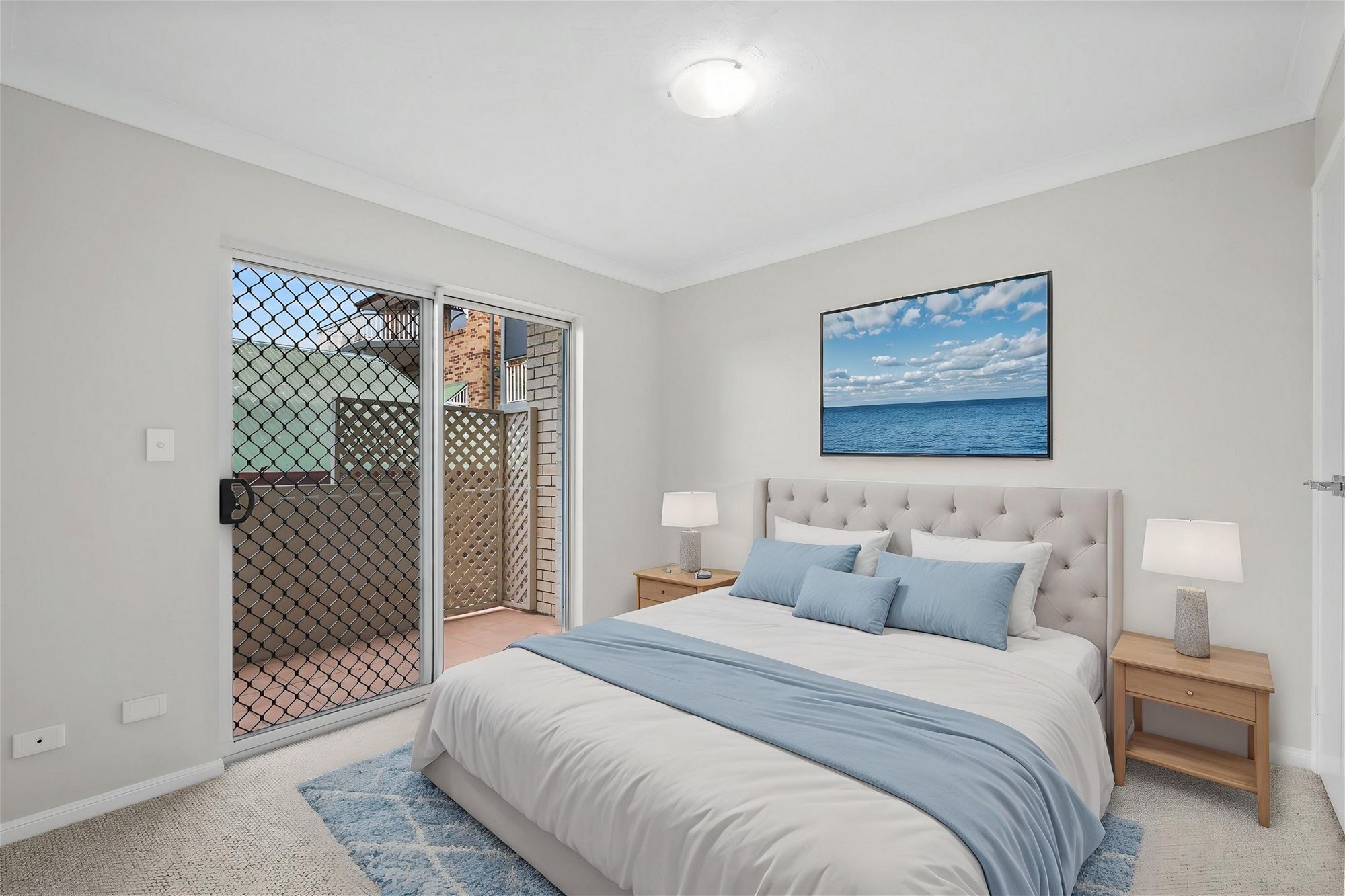 The master bedroom is a relaxing retreat and features its own ensuite and access to a small private balcony, ideal for letting in fresh air and light. The second bedroom is serviced by the main bathroom, which includes a bathtub for added comfort.